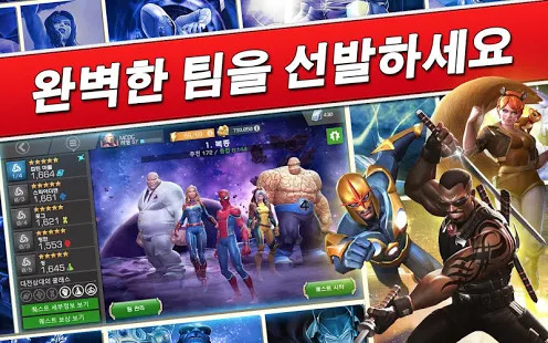• 히어로와 빌런으로 막강한 팀을 만드세요. 아이언맨, 헐크, 울버린, 스톰, 스타 로드, 가모라, 스파이더맨, 데드풀, 매그니토, 윈터 솔져 같은 챔피언을 자유롭게 고를 수 있습니다.