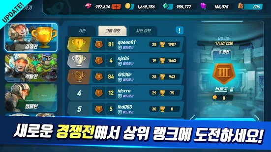 시즌제로 진행되는 경쟁전에 참여해 다른 플레이어들과 우위를 가리세요. 이틀에 한 번 새롭게 펼쳐지는 라운드에서 리그 내 상위 랭크에 오르면 많은 보상도 주어집니다.