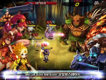- 300여 종류의 개성 있는 영웅들 (5가지 속성 존재: 불, 물, 나무, 빛, 어둠)