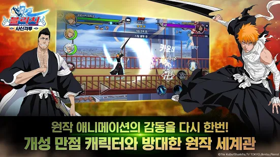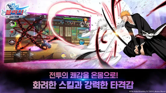 쿠로사키 이치고, 쿠치키 뱌쿠야, 이시다 우류 등 원작 애니메이션의 인기 캐릭터를 통해 벌이는 실시간 PvP 전투! 강력한 사신과 맞서 싸워 최강의 자리를 차지하라!