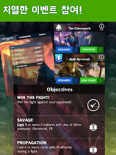 일일 이벤트와 플레이어 대 플레이어(PVP) 토너먼트에 참여하여 상대방에게 덱을 시험해보세요. 순위표에서 정상을 향해 오르고 여러 보상을 타서 더욱 강력하고 좋은 덱을 짜세요!