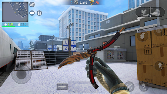 경찰 혹은 강도 플레이 안드로이드 용 1인칭 슈팅 게임에서 전투 기술을 보여줍니다.