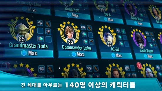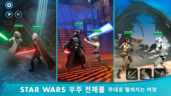 좋아하는 다크 사이드 및 라이트 사이드의 영웅들과 함께 스타워즈 영화 속 유명한 장소를 무대로 전투를 벌이며 은하계의 지배자가 되어 보세요. 한 솔로: 스타워즈 스토리, 스타워즈: 라스트 제다이, 로그 원: 스타워즈 스토리의 새로운 캐릭터들과 전 시대를 걸친 캐릭터들을 수집하고 꿈에 그리던 자신만의 분대를 편성해보세요. 턴제 RPG로 진행되는 은하 전쟁에 참가해 거대한 보스들을 상대하고 밀레니엄 팔콘과 같은 전설의 우주선도 조종하며 자신만의 전략을 시험해보세요!