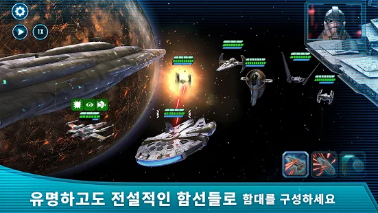 밀레니엄 팔콘, 그리고 아크바르 제독의 홈원과 같은 거대하고 유명한 함선들을 수집하고 자신만의 전투 함대를 편성해보세요. 침착하게 전투를 진행하며 지원 요청과 필살 전략을 사용하여 전세를 역전시켜보세요. 함대 아레나에서 새로운 챌린지에 도전하고 경쟁을 치르며 자신의 실력을 시험해보세요. 오직 함선 전투 보상으로만 얻을 수 있는 특별한 캐릭터 업그레이드 재료를 획득하세요. 각 조종사들은 그들만의 고유 함선을 조종할 수 있으며 함선에 특수 능력을 부여할 수 있습니다. 강력한 조종사들을 수집하여 은하 최강의 함대를 편성해보세요!