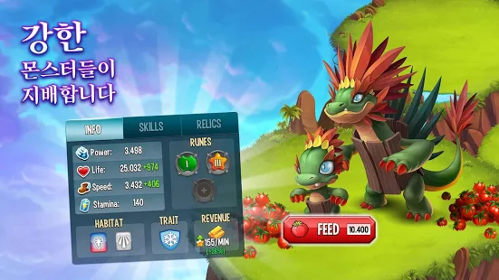 - 400마리 이상의 괴물 및 짐승을 수집하고 진화시켜 보세요. 매주 게임에 새로운 괴물이 추가됩니다! 지금 바로 괴물 달걀을 해칭해 보세요! 무시무시한 화염을 내뿜는 드래곤이 나올까요? 아니면 살을 에는 듯한 냉기를 내뿜는 드래곤이 나올까요?