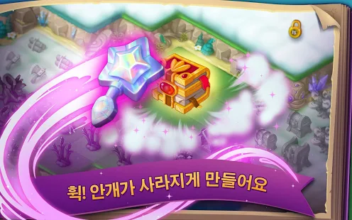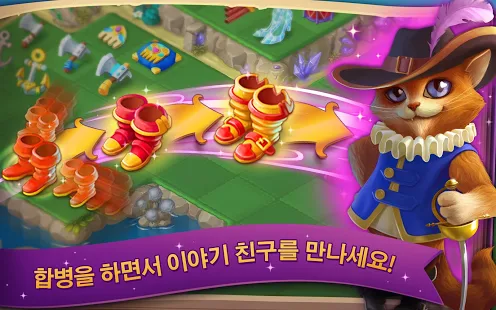 사탕이 나무에서 떨어지고 밀밭이 자원으로 쏟아져 나오고, 많은 보물로 광산이 번성하여 더 큰 합병으로 변모합니다. 동화 아이템을 통해 새로운 스토리 캐릭터를 발견할 수 있는 아이템을 찾습니다. 도끼들을 합쳐서 강력한 폴 번얀을, 보석으로 장식한 빗을 합쳐 빛나는 라푼젤을 볼 수 있습니다! 서프라이즈 –이 영웅들은 특별한 반전을 가지고 있습니다!