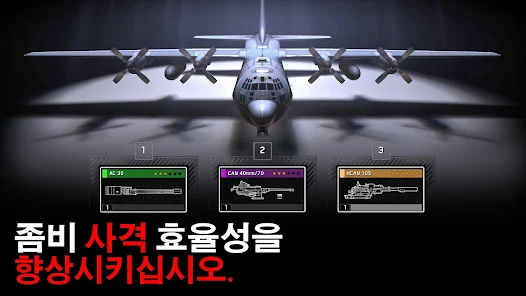 기지에서 방어를 구축하고 인류의 존속을 보장하세요. AC 130 중무장 비행기를 타고 지상 병력이 목표를 완수할 수 있게 지원하세요. 그들이 좀비 무리에 둘러싸여 죽을지는 오직 당신에게 달렸습니다. 전설적인 무기 수집가가 돼 보세요!