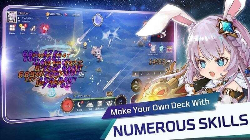 Those who steal the light of the moon are indeed powerful. They’re huge, and every step makes the whole planet tremble in fear. When playing directly, Idle Moon Rabbit will suggest the enemy’s attacks to let you know in advance in case it is too difficult. For example, if the boss is about to launch the most substantial counterattack, you will receive a withdrawal notice. You stay out of their range, creating an excellent opportunity to charge later. Destroying them is a long-term process; you have to keep trying. You plow through to find jewels, weapons, and supreme energy to aid you in battle.