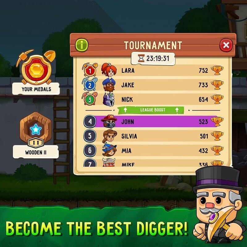 The game will have more attractive side quests for you. These quests also help you get a lot of gold and gems. The village you live in is very old. You can help the villagers remodel their house or some buildings. Fix the elevator to get underground. If you want to dig gold faster you can craft items and support tools. Using exclusive treasure digging tools will help you go deeper into the maze. The quests after being completed will be cumulative. You will receive rewards after these accumulations fill.