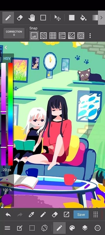 The color palette is an element that MediBang Paint APK 27.20 has never set any specific limits on. Each individual color may not stand out when standing alone, but when combined together, it is extremely surprising. Therefore, you must prioritize suitability instead of just considering the angle of beauty or ugliness. You can adjust the color tone based on the toolbar, deciding the intensity or lightness of that color. There may be one or more objects in the picture, the sketching process is complete, now you just need to color them. Bright colors or warm tones, it all depends on the nature of the story you want to convey.