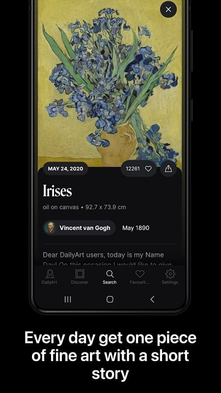Works of art will become even more beautiful when viewed by many people, and DailyArt fully allows users to share this vast art treasure with friends, family members, or people who share the same passion. Users can share via message, email, or post directly on social networks; all shared works will display all relevant information from the author to the story behind them. So that people who don’t download DailyArt can still admire it. Please take advantage of different tags to categorize the works that users feel in each specific category so that users can quickly find the work they want. This also makes it easier to share users’ passion for art.